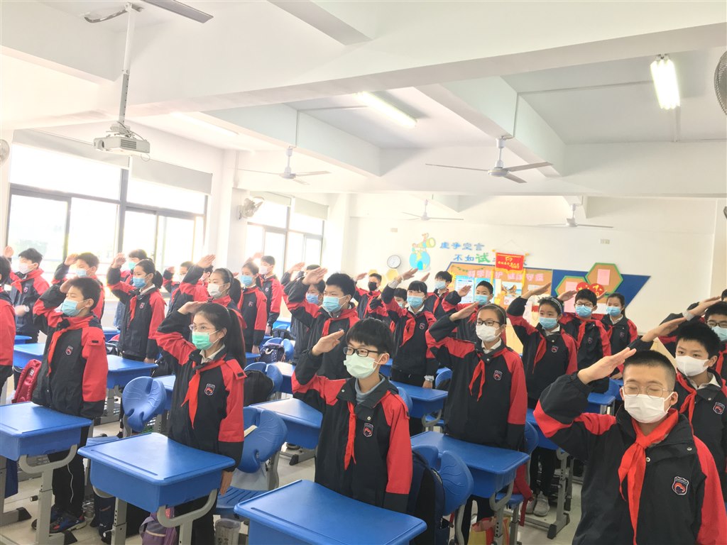 升旗仪式上,蒋瑛校长也为同学们送来了开学寄语。她告诉同学们,这次疫情是在警示人们应与大自然和平共处,不要滥杀动物。中华民族自古以来都是一个多灾多难的民族,但我们民族面对灾难总是不屈不挠。我们要向心怀大爱的李兰娟院士、钟南山院士致敬。钟南山院士说:“人心里有两个‘我’,第一个是‘小我‘,第二个是‘大我’。‘小我’是保护好自己,‘大我’是心里有集体。蒋校长还暖心提醒大家,现在正是人间最美四月天,勤洗手,戴口罩,遇到熟人保持距离。五一小长假,建议市内休闲游。