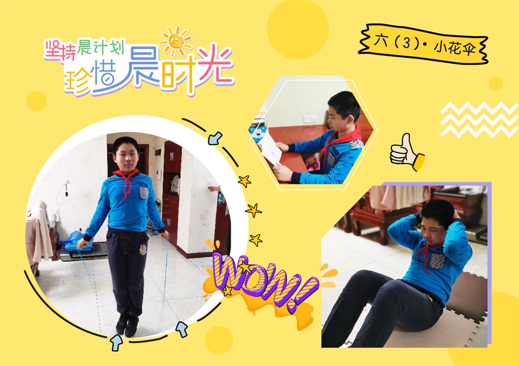 俗话说:“少年易学老难成,一寸光阴不可轻。”在春光灿烂的五一假期来临之际,学校大队部策划推出了“一日之计在于晨——龙锦娃五一晨计划”活动。“小花伞”中队的少先队员们积极响应!一天里最宝贵的时候是早晨;一天里,最可爱的时候也是早晨。