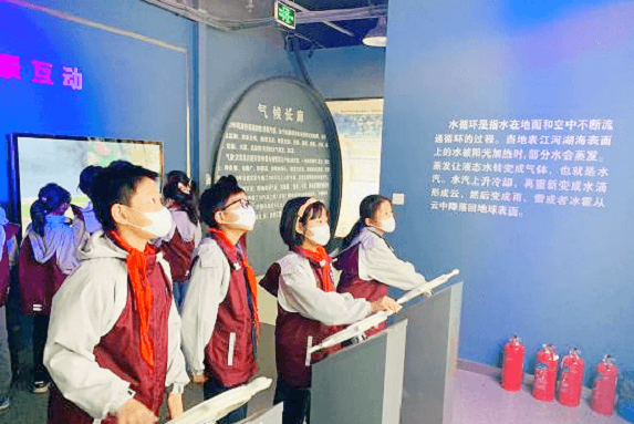 同学们首先来到的是气象科普馆,解说员为同学们介绍“蝴蝶效应”,讲解有关大气层、全球气候变暖的原因、四季的变化、气候的形成等知识,让同学们感受四季变化之魅力。